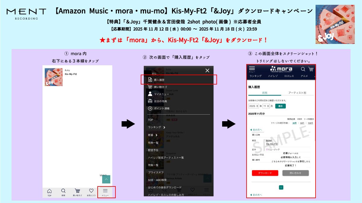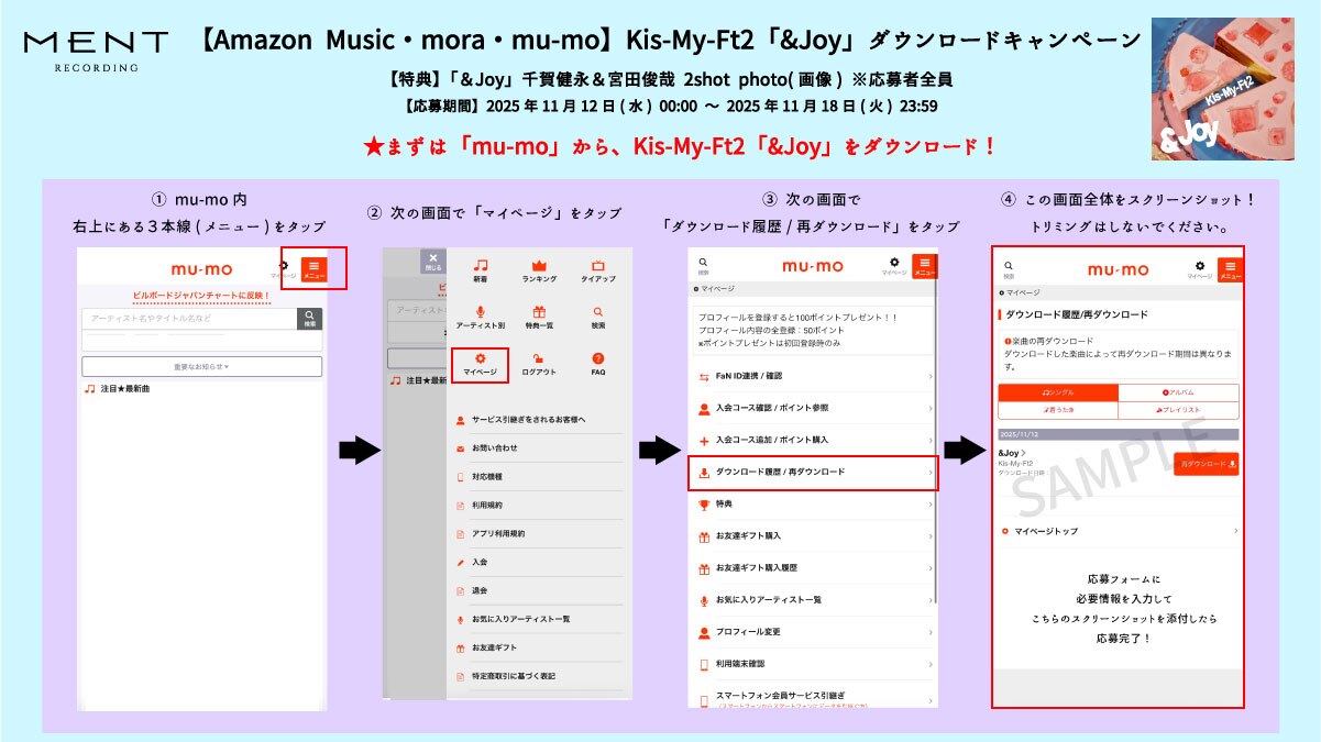 ・Amazon Music(デジタルミュージック MP3ダウンロード)/ mora / mu-mo いずれかのサービスにてKis-My-Ft2「&Joy」をダウンロードされた方