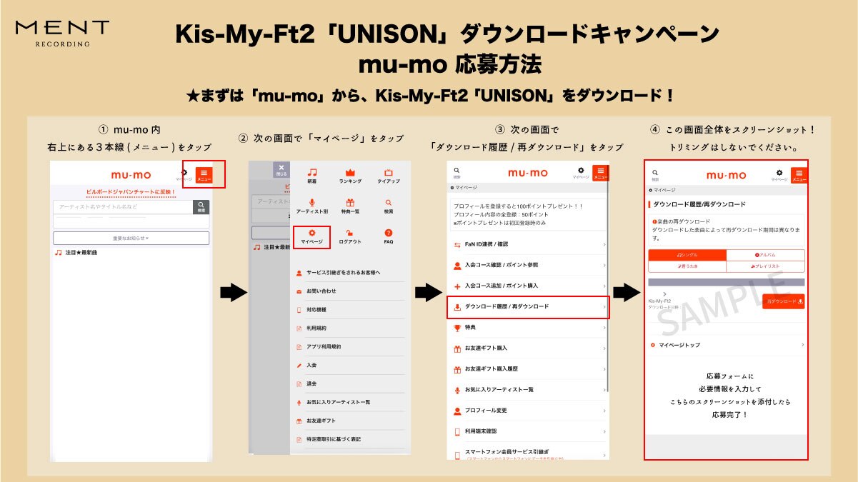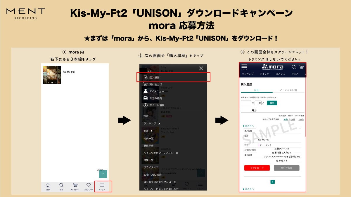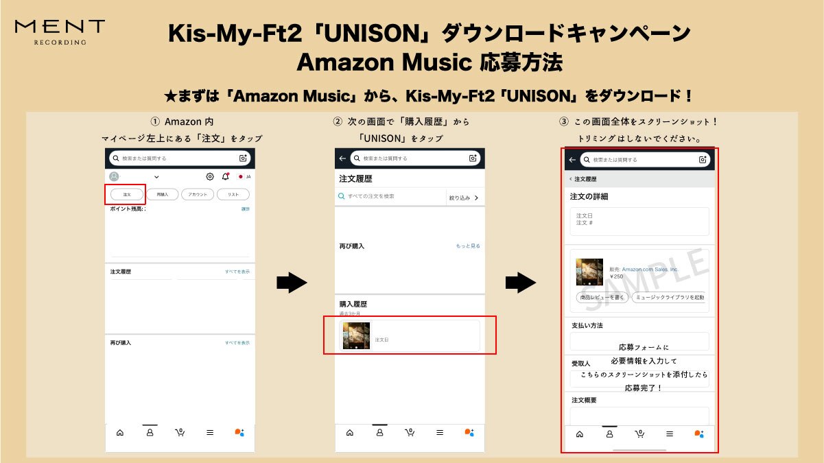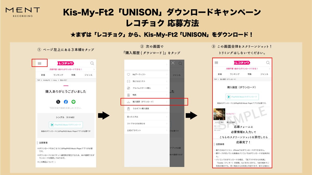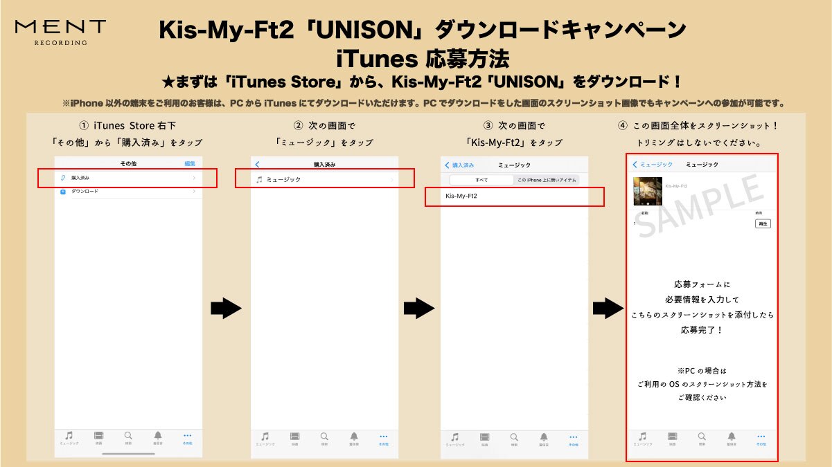 1. iTunes / Amazon Music / dミュージック / mu-mo / mora / レコチョク いずれかにてKis-My-Ft2「UNISON」をダウンロード。